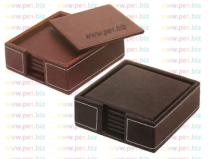 שישה תחתיות לכוס במעמד דמוי עור 12X12X4 סמ